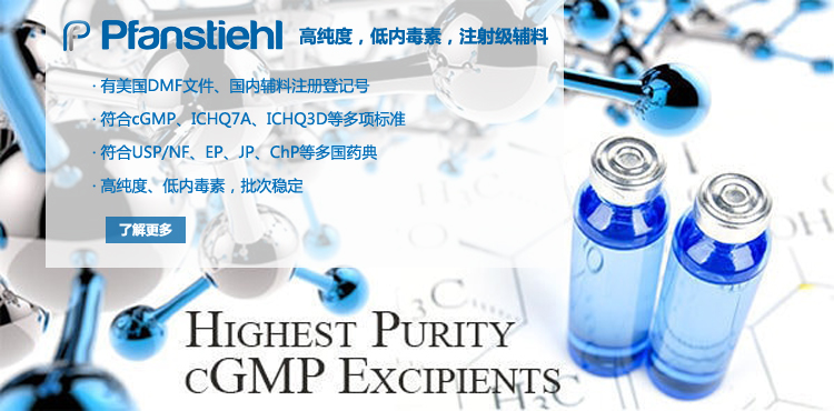 “熱烈祝賀Pfanstiehl的注射級甘氨酸Glycine(G-140)喜獲CDE登記號F20250000403, 這是Pfanstiehl產品獲得的第18個CDE登記號!”甘氨酸在醫藥輔料制劑中應用廣泛,, 可作為緩沖劑,增溶劑,穩定劑等,具有諸多優勢。Pfanstiehl秉承一貫高品質理念,為滿足全球生物制藥行業對于高品質甘氨酸的需求,隆重推出的注射級甘氨酸Glycine (G-140), 具有超高純度,超低內毒素,超低金屬殘留的特點,單獨檢測29種金屬離子,并且新增DNA,RNA,DNA酶,RNA酶和脂肪酶,亞硝酸鹽等多項質量指標的檢測,符合多國藥典規定(USP, EP, BP, JPE, ChP),可用于生物治療性藥物和疫苗的生產。產品信息:· 產品名稱:Glycine, High Purity, Low Endotoxin, Low Metals, USP, EP, BP, JPE, ChP (G-140)· 中文名稱:甘氨酸· 分子式:C2H5NO2· 分子量:75.07 g / mol· CAS號:56-40-6· 產品貨號:G-140產品特點: · 超高純度,超低內毒素,超低微生物含量,超低金屬雜質殘留· 質量指標新增DNA,RNA,DNA酶,RNA酶,脂肪酶和亞硝酸鹽檢測· 符合多國藥典:USP, EP, BP, JPE, ChP· 符合ICH Q3D標準· 符合GMP標準· 已獲DMF和CDE登記號 產品應用:· 緩沖劑· 穩定劑· 增溶劑如果您對Pfanstiehl注射級別Glycine G-140感興趣,歡迎聯系Pfanstiehl 中國區代理商北京西美杰科技有限公司獲得如下詳細的產品概況說明文件和測試樣品。Pfanstiehl Inc.最新產品系列如下,歡迎聯系北京西美杰科技有限公司獲取100g裝免費樣品。北京西美杰科技有限公司為Pfanstiehl中國代理,為客戶提供完善的技術支持與售后服務。歡迎撥打西美杰客服電話400-050-4006或者登陸網站www_xmjsci_com.hejixiang.com了解更多信息。 更多>